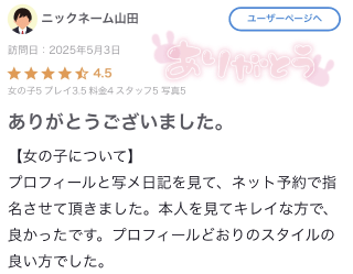 ニックネーム山田さん、口コミ投稿