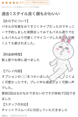 お遊び後に口コミ投稿したお客様の中から