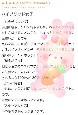 お遊び後に口コミ投稿したお客様の中から