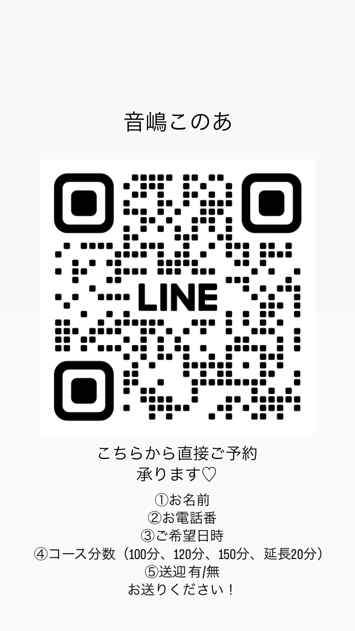 ※ご予約専用LINEですのでその他の内容はお返事が遅かったりできない場合がございますのでご了承ください💦