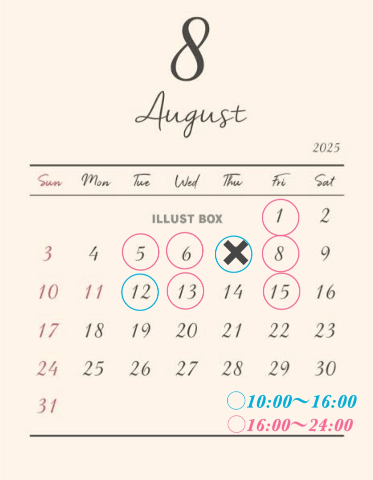 📢2025年8月の出勤予定&姫予約のご案内💕