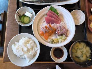 私はお刺身定食にしました?親友ちゃんは脂の乗った秋刀魚定食。