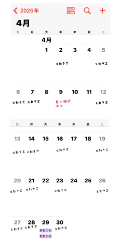 4月出勤予定