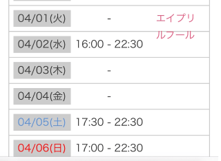 日曜 12時〜14時だけ