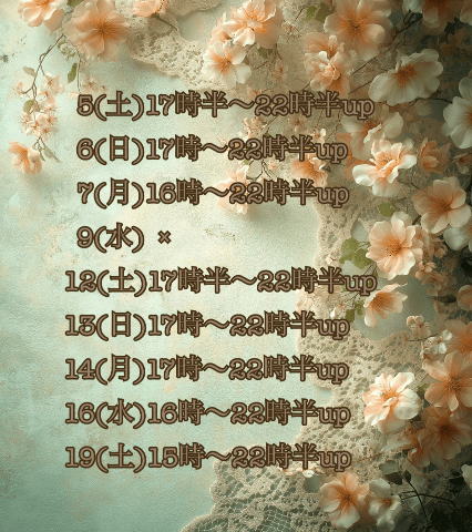 6(日)16時半〜23時up