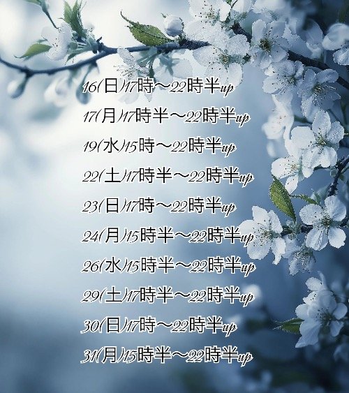 31(土) 出勤早めるかも?