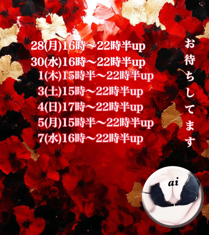 4/29、5/2.3.5 13-23時で出勤予定です♪