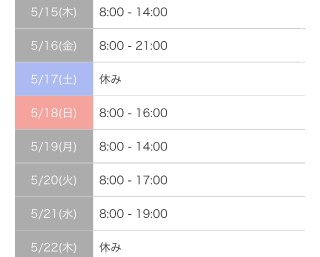 5/15(木)8〜14時 シフト延長不可
