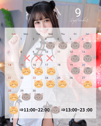 9月のシフト少し変更しております⚠️