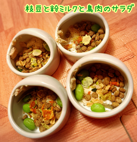 枝豆とカニかまのスクランブルエッグと、